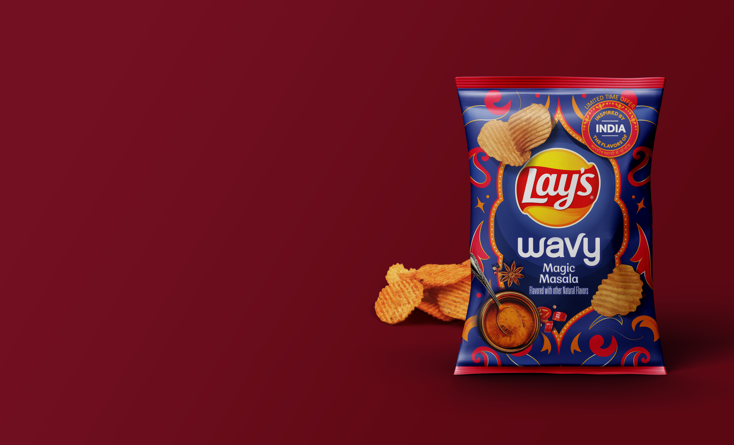 I designed a series of Lay’s packaging for the Asian market, celebrating bold, regionally inspired flavors. Each design captures the essence of its unique flavor—Masala for India, Thai Red Curry for Thailand, and Honey Butter for Korea—through vibrant colors, culturally inspired patterns. The packaging blends modern aesthetics with traditional influences, creating a visual connection to each region while maintaining Lay’s iconic brand identity.